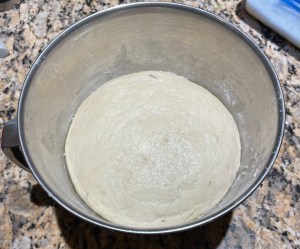 Grease a large bowl with a small amount of olive oil. Transfer the dough to the bowl, turning it to coat the surface with oil. Cover the bowl with a damp kitchen towel or plastic wrap and let it rise in a warm, draft-free area for 1.5-2 hours, or until the dough doubles in size. If your house temperatures are on the colder side, you can place the bowl in an oven with the oven light on.